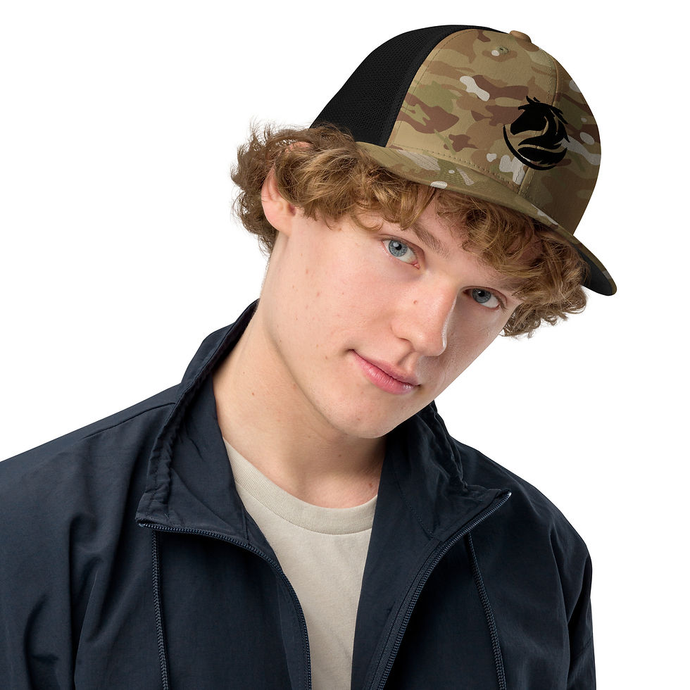 Roan Black Logo Camo Mesh Closed-back Trucker Cap